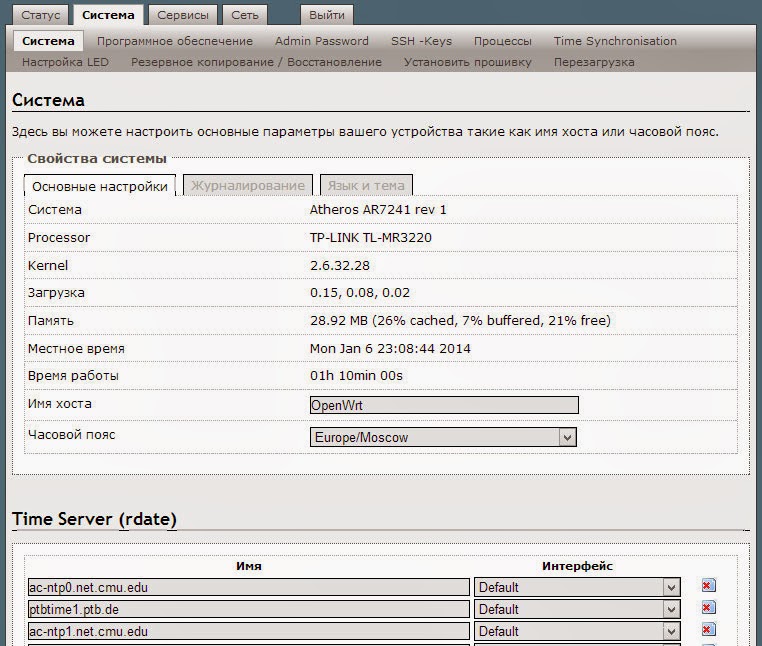 изменения нашего часового пояса в данной прошивки, можно подобрать